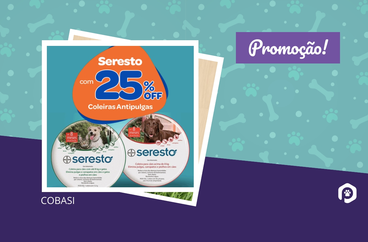 Super promoção no site da Cobasi, coleira Seresto com 25% de desconto! A Coleira Seresto é eficaz contra pulgas e carrapatos por até 8 meses,…