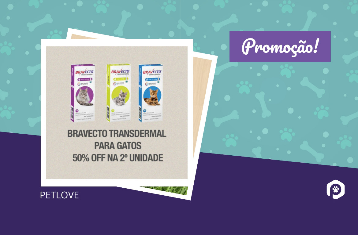 Ganhe 50% de desconto na segunda unidade do antipulgas MSD Bravecto Transdermal para Gatos no site da PetLove.