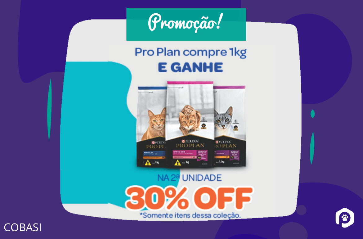 Aproveite essa promoção no site da Cobasi e compre Ração ProPlan Gatos 1kg com 30% de desconto na segunda unidade!