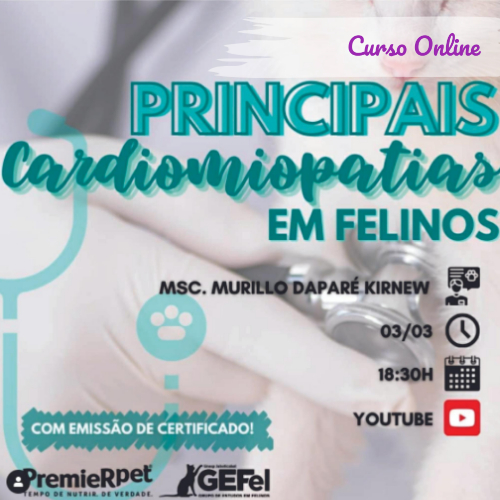 Curso OnlineO GEFel convida a todos para primeira webpalestra do ano, com o tema "PRINCIPAIS CARDIOMIOPATIAS EM FELINOS"! Será realizada no dia 03/03 (quarta-feira) às 18h30.