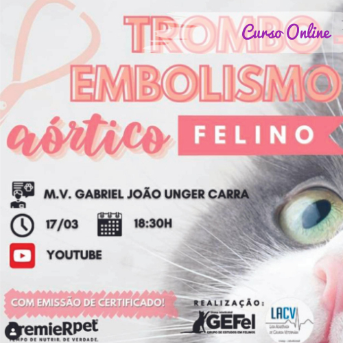 Dessa vez, em uma parceria GEFel-LACV, convidamos a todos para a webpalestra "TROMBOEMBOLISMO AÓRTICO FELINO"! Ela será realizada no dia 17/03 (Quarta-feira) às 18h30, ministrada pelo M.V. Gabriel João Unger Carra.