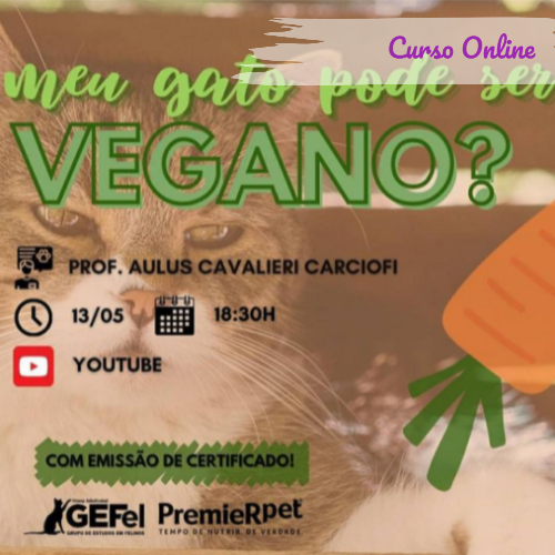 O GEFel convida a todos para a maravilhosa webpalestra "MEU GATO PODE SER VEGANO?"! Será realizada no dia 13/05 (quinta-feira) às 18h30, ministrada pelo Prof. Aulus Cavalieri Carciofi.