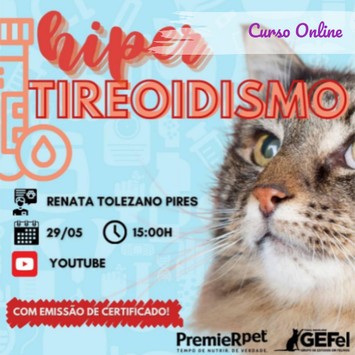 Olá, Gateiros e Gateiras! O GEFel convida a todos para a maravilhosa webpalestra "HIPERTIREOIDISMO"! Será realizada no dia 29/05, às 15h, ministrada pela Renata Tolezano Pires.
