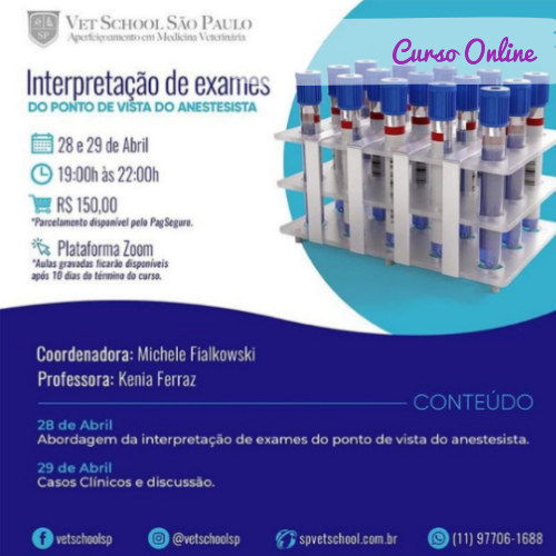 Novidade na área: Interpretação de exames do ponto de vista do anestesista, dias 28 e 29/04, das 19h às 22h.