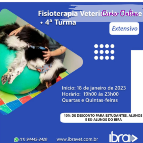 Fisioterapia Veterinária Online • 4ª Turma, com início no dia 18/01/23, das 19h às 23h. Se ligue!… se a primeira, segunda, terceira turma, foi sucesso…