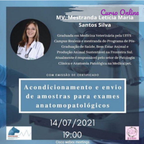 No dia 14/07/2021, das 19h às 22h30, teremos a palestra intitulada “Acondicionamento e envio de amostras para exames anatomopatológicos”, com a MV. Mestranda Letícia Maria…