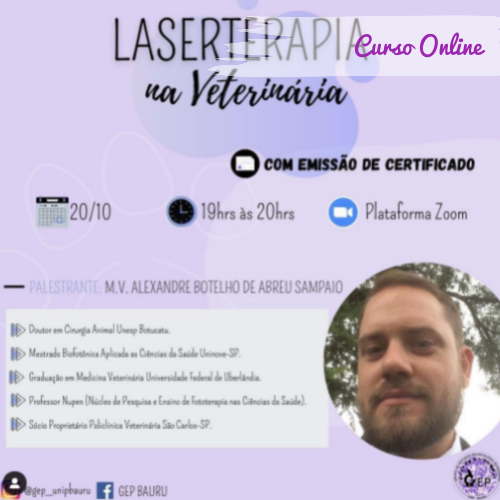 Venho através dessa publi, convidar todos vocês a assistirem mais uma palestra, dessa vez com o médico veterinário Alexandre Botelho! @lasercirurgia, que acontecerá no dia 20/10,…