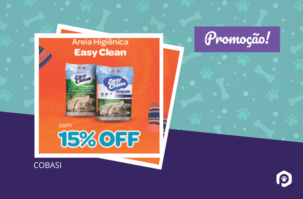 Aproveite essa promoção no site da Cobasi e compre Areia higiênica Easy Clean. com 15% de desconto!