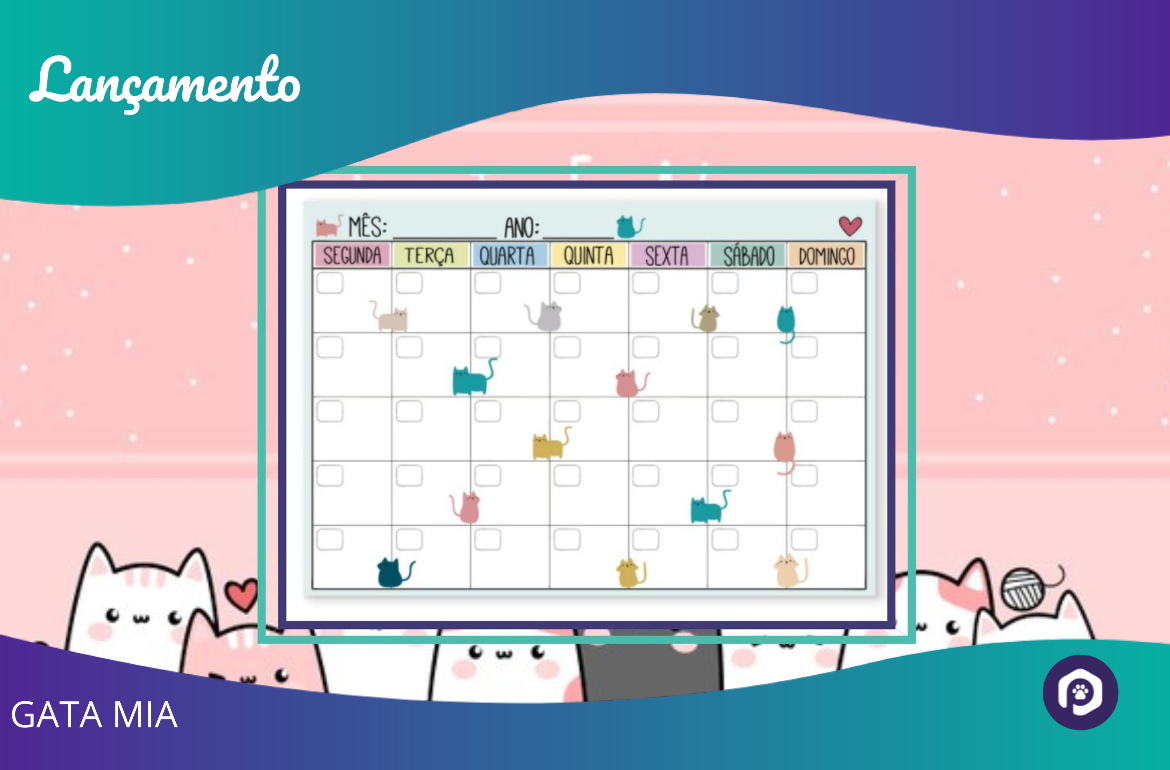 Planner mensal gatinhos coloridos. São 25 folhas para você anotar e não esquecer seus compromissos, e ainda com estampa de gatinho que qualquer gateira(o) se…