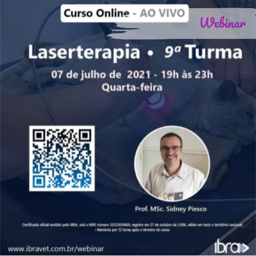 Webinar Laserterapia • 9ª Turma. O curso acontecerá no dia 07/07, das 19h às 23h. É a 9ª Turma, sucesso total, você não pode perder!