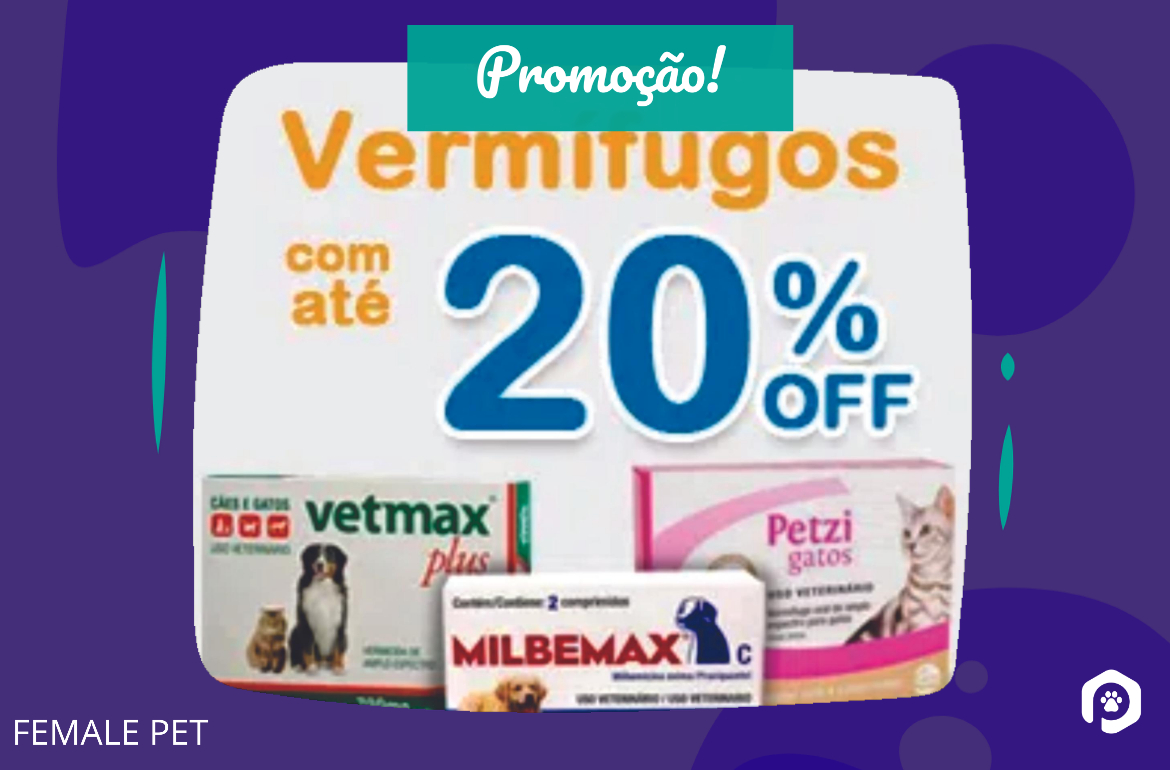 Aproveite a promoção no site da Female Pet e compre vermífugos com até 20% de desconto!